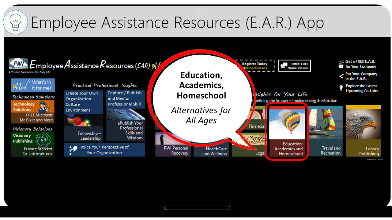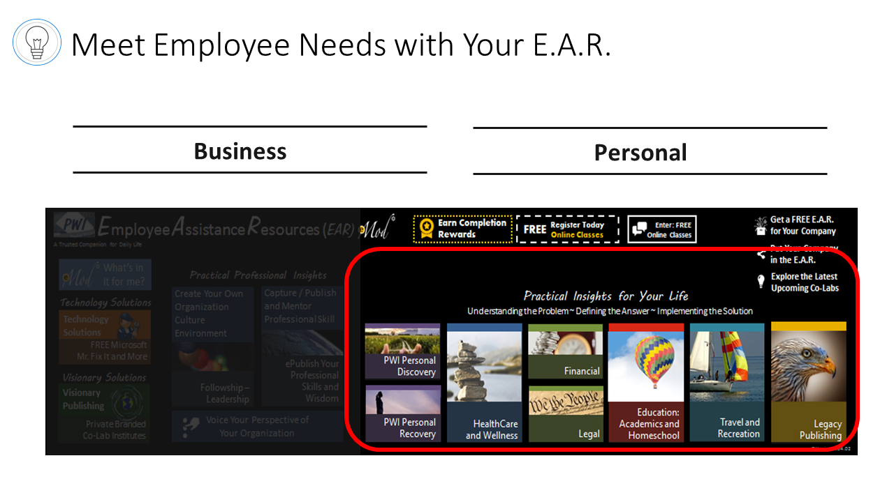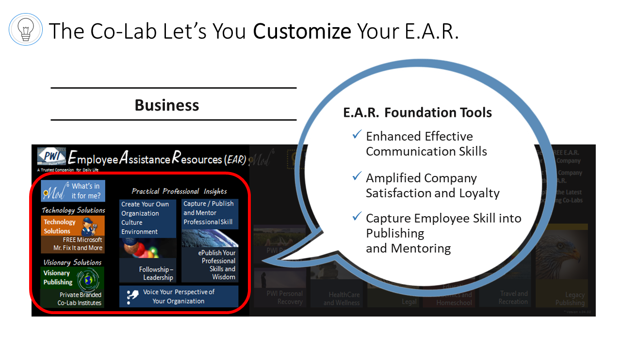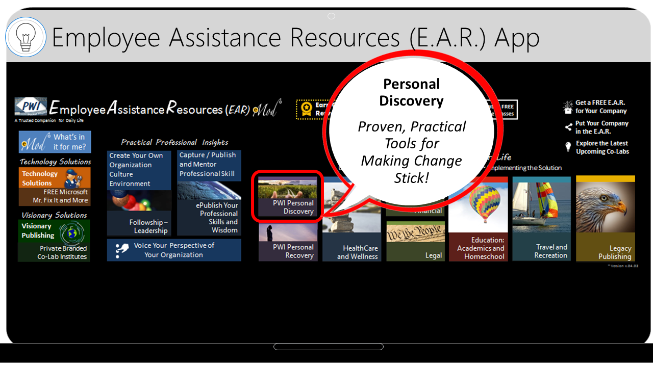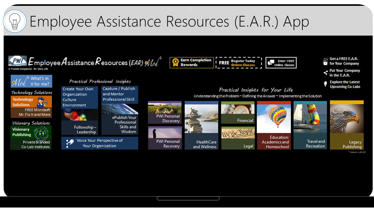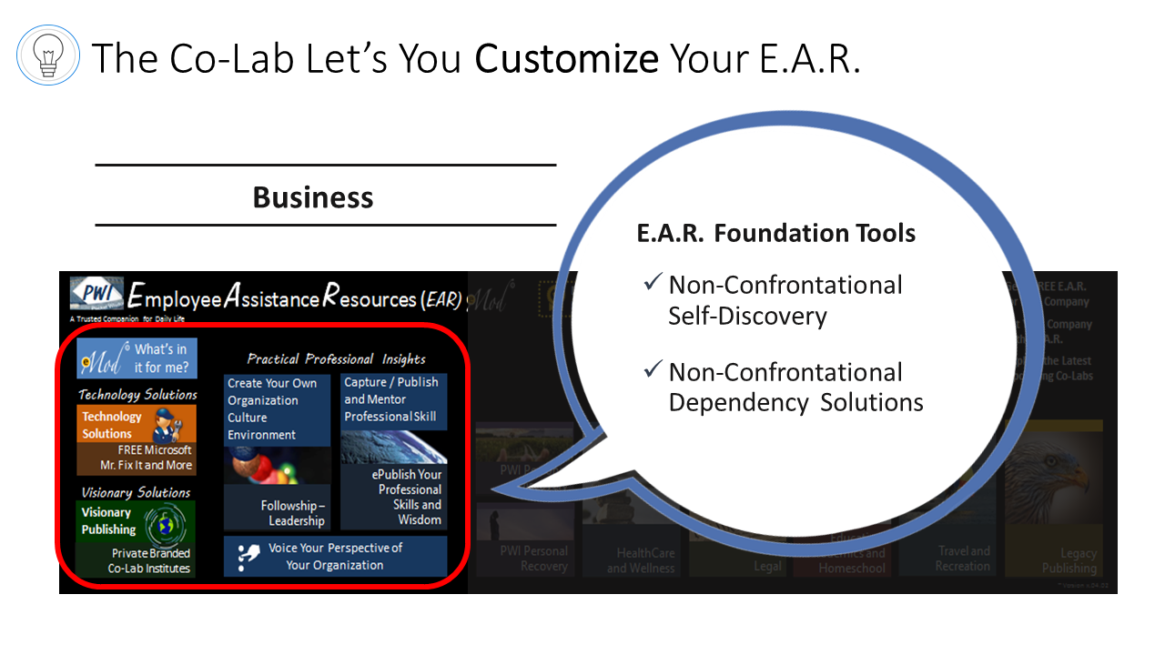 There is an increasing need for Businesses, Organizations and Schools (B.O.S.) to develop and maintain drug/alcohol free cultures. B.O.S. are looking for emotionally stable employees who are loyal, dedicated and mature, open and ready for change/growth. To address this need, Awareness Communication Technology, LLC, a Microsoft Senior Research and Development Partner with a team of top developers, created an advanced Employee Assistance Resource (E.A.R) for its loyal SMB Customers.